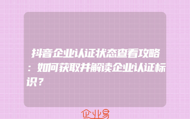 - 抖音企业认证状态查看攻略:如何获取并解读企业认证标识?