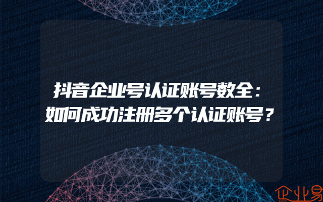 - 抖音企业号认证账号数全:如何成功注册多个认证账号?