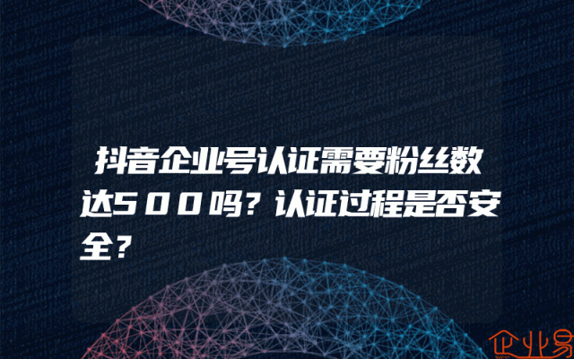 - 抖音企业号认证需要粉丝数达500吗?认证过程是否安全?