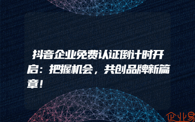 - 抖音企业免费认证倒计时开启:把握机会,共创品牌新篇章!