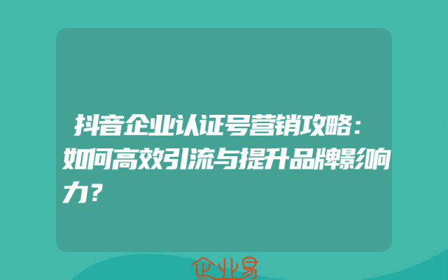 - 抖音企业认证号营销攻略:如何高效引流与提升品牌影响力?
