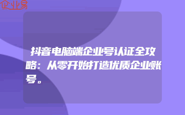 - 抖音电脑端企业号认证全攻略:从零开始打造优质企业账号。