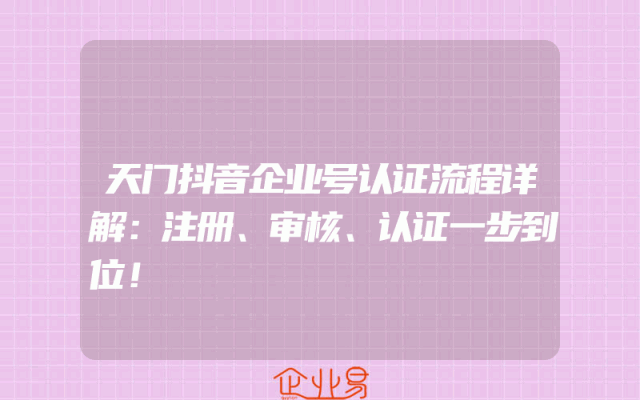 - 天门抖音企业号认证流程详解:注册、审核、认证一步到位!