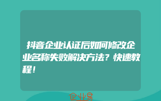 - 抖音企业认证后如何修改企业名称失败解决方法?快速教程!