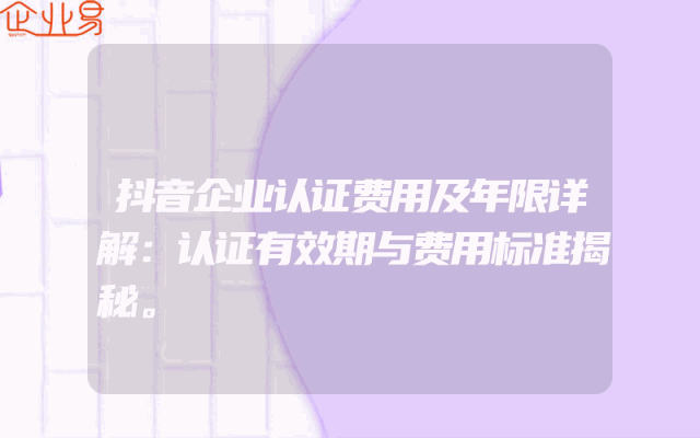 - 抖音企业认证费用及年限详解:认证有效期与费用标准揭秘。