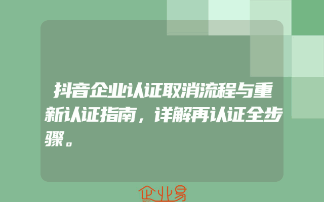 - 抖音企业认证取消流程与重新认证指南,详解再认证全步骤。
