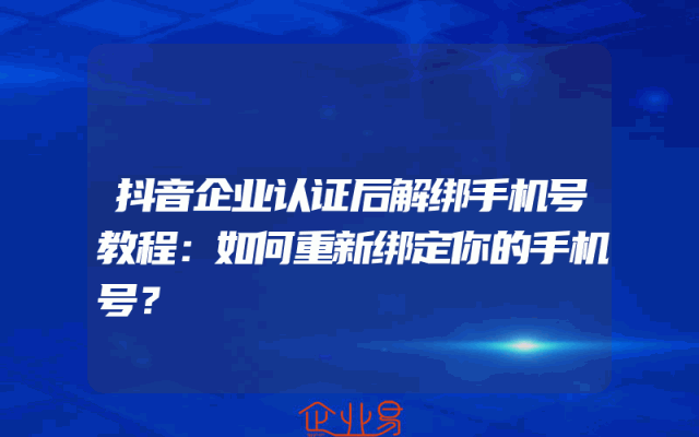 - 抖音企业认证后解绑手机号教程:如何重新绑定你的手机号?