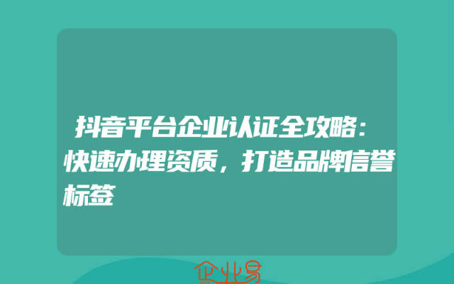 - 抖音平台企业认证全攻略:快速办理资质,打造品牌信誉标签