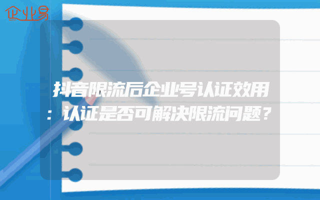 - 抖音限流后企业号认证效用:认证是否可解决限流问题?