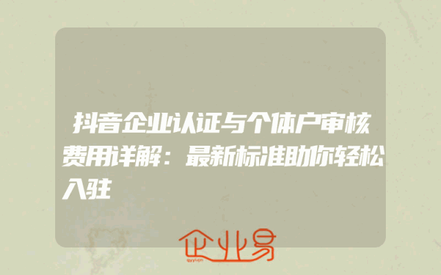 - 抖音企业认证与个体户审核费用详解:最新标准助你轻松入驻
