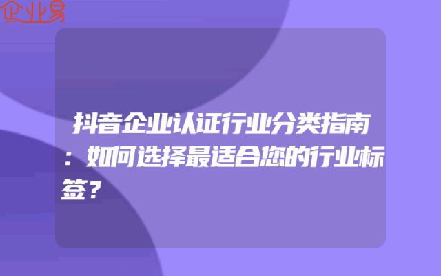 - 抖音企业认证行业分类指南:如何选择最适合您的行业标签?