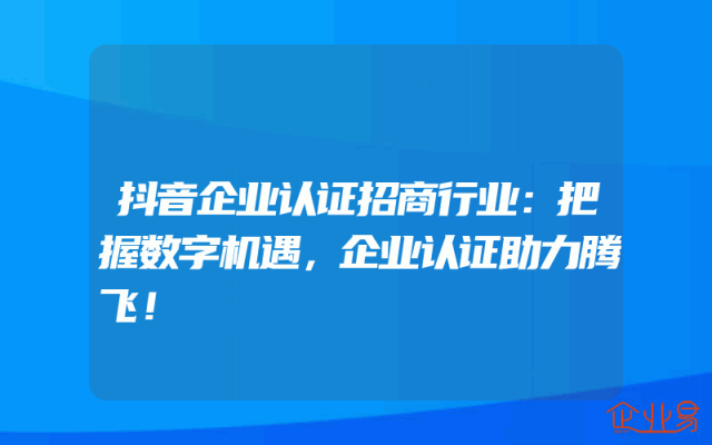 - 抖音企业认证招商行业:把握数字机遇,企业认证助力腾飞!
