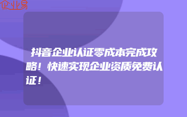 - 抖音企业认证零成本完成攻略!快速实现企业资质免费认证!