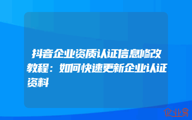 - 抖音企业资质认证信息修改教程:如何快速更新企业认证资料