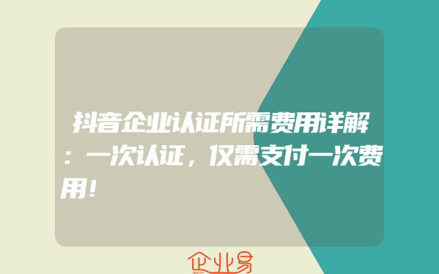 - 抖音企业认证所需费用详解:一次认证,仅需支付一次费用!