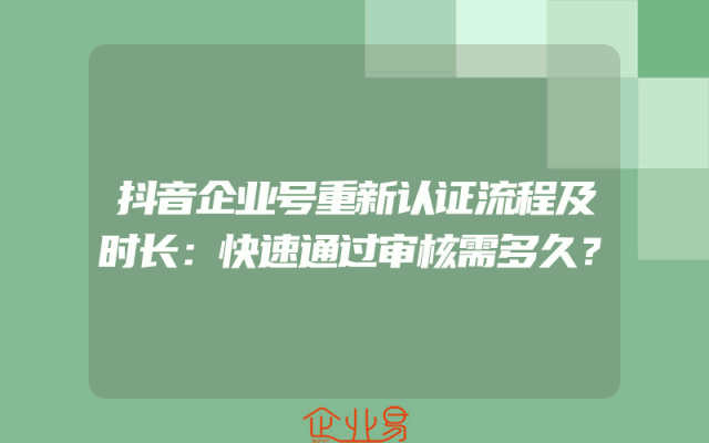- 抖音企业号重新认证流程及时长:快速通过审核需多久?