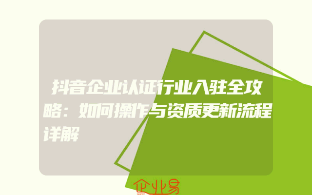 - 抖音企业认证行业入驻全攻略:如何操作与资质更新流程详解