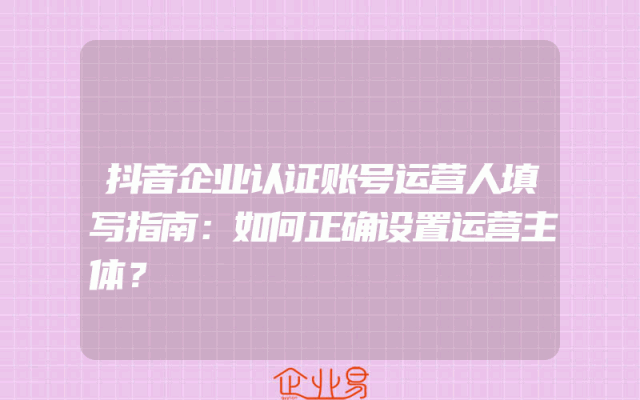 - 抖音企业认证账号运营人填写指南:如何正确设置运营主体?