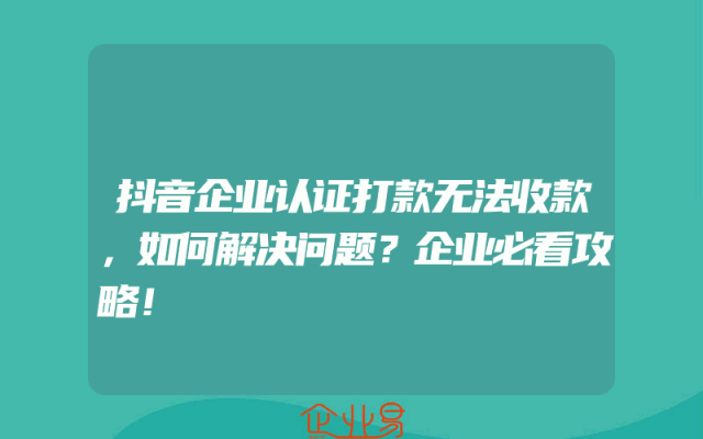 - 抖音企业认证打款无法收款,如何解决问题?企业必看攻略!