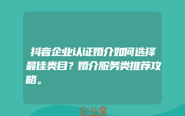 - 抖音企业认证婚介如何选择最佳类目?婚介服务类推荐攻略。