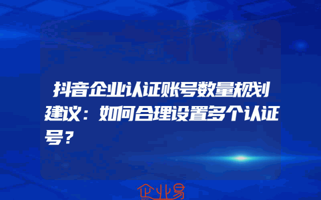 - 抖音企业认证账号数量规划建议:如何合理设置多个认证号?