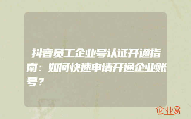 - 抖音员工企业号认证开通指南:如何快速申请开通企业账号?