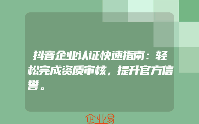 - 抖音企业认证攻略:如何快速完成资质办理并获取官方认证?一、了解抖音企业认证的重要性在当今数字化时代,抖音已成为众多企业推广品牌、拓展市场的重要渠道。获取抖音企业认证,不仅能提升企业的公信力和品牌
