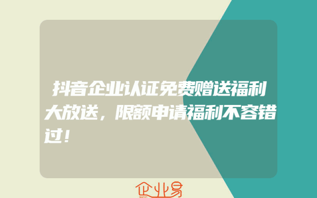 - 抖音企业认证免费赠送福利大放送,限额申请福利不容错过!