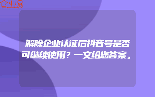- 解除企业认证后抖音号是否可继续使用?一文给您答案。