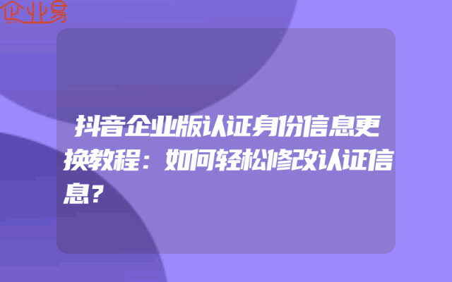 - 抖音企业版认证身份信息更换教程:如何轻松修改认证信息?