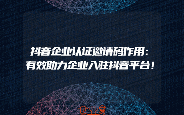 - 抖音企业认证邀请码作用:有效助力企业入驻抖音平台!