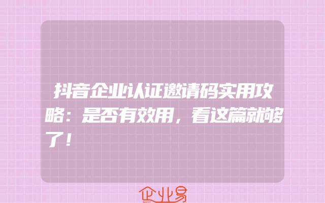 - 抖音企业认证邀请码实用攻略:是否有效用,看这篇就够了!