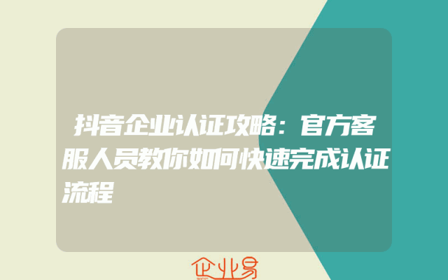 - 抖音企业认证攻略:官方客服人员教你如何快速完成认证流程