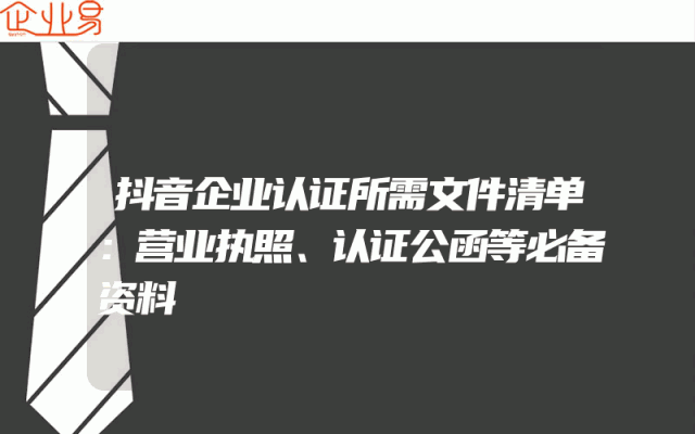- 抖音企业认证所需文件清单:营业执照、认证公函等必备资料