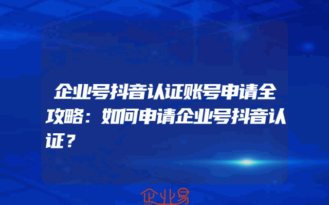 - 企业号抖音认证账号申请全攻略:如何申请企业号抖音认证?