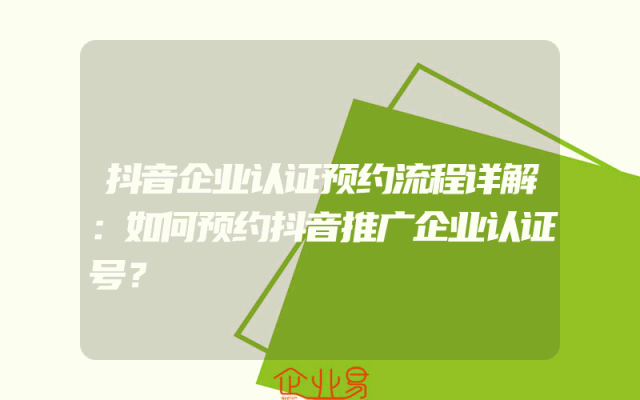 - 抖音企业认证预约流程详解:如何预约抖音推广企业认证号?