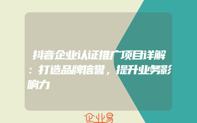 - 抖音企业认证推广项目详解:打造品牌信誉,提升业务影响力