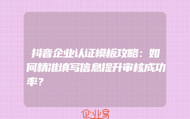 - 抖音企业认证模板攻略:如何精准填写信息提升审核成功率?