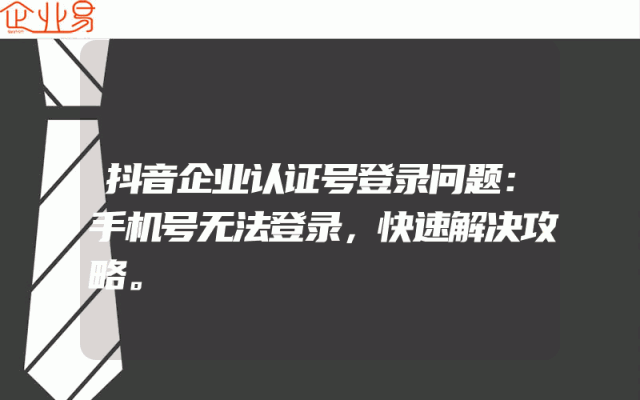 - 抖音企业认证号登录问题:手机号无法登录,快速解决攻略。