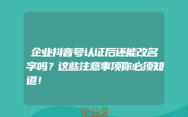 - 企业抖音号认证后还能改名字吗?这些注意事项你必须知道!