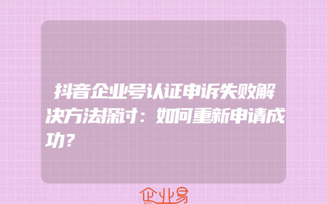 - 抖音企业号认证申诉失败解决方法探讨:如何重新申请成功?