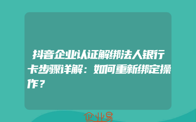 - 抖音企业认证解绑法人银行卡步骤详解:如何重新绑定操作?