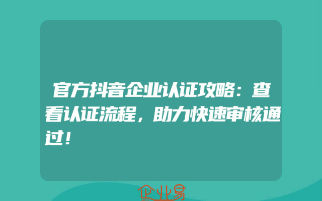 - 抖音企业认证攻略:轻松完成资质审核,助力企业品牌建设!