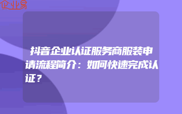 - 抖音企业认证服务商服装申请流程简介:如何快速完成认证?