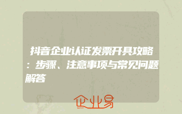 - 抖音企业认证发票开具攻略:步骤、注意事项与常见问题解答