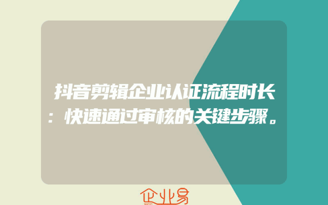 - 抖音剪辑企业认证流程时长:快速通过审核的关键步骤。