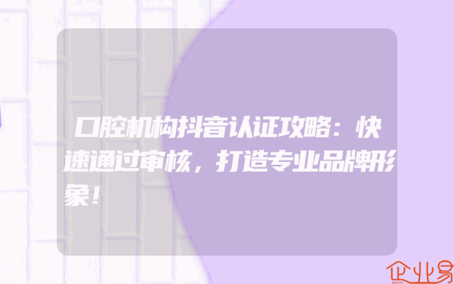 - 口腔机构抖音认证攻略:快速通过审核,打造专业品牌形象!