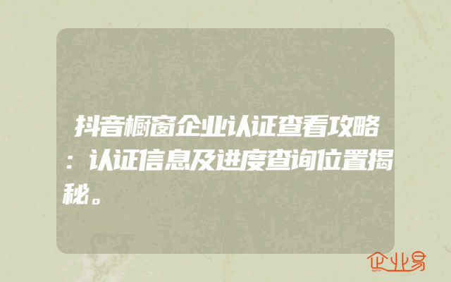 - 抖音橱窗企业认证查看攻略:认证信息及进度查询位置揭秘。
