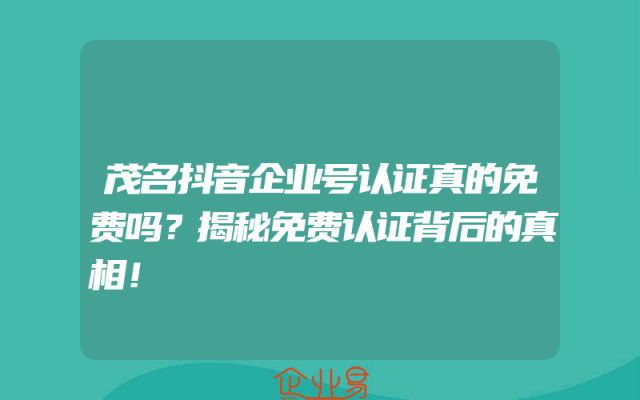 - 茂名抖音企业号认证真的免费吗?揭秘免费认证背后的真相!
