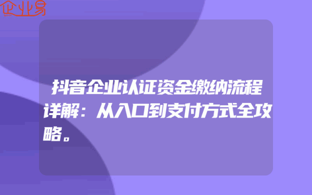 - 抖音企业认证资金缴纳流程详解:从入口到支付方式全攻略。